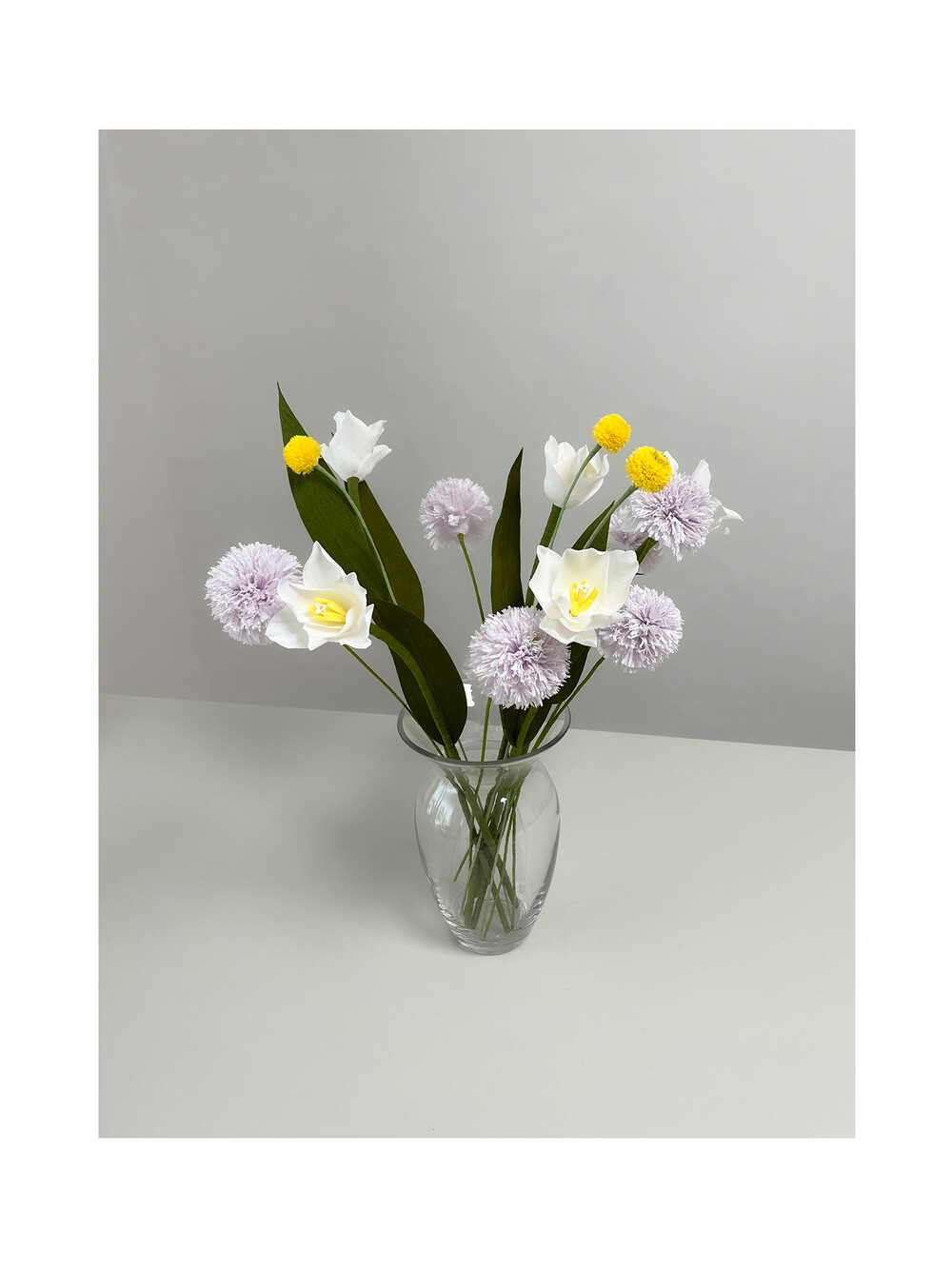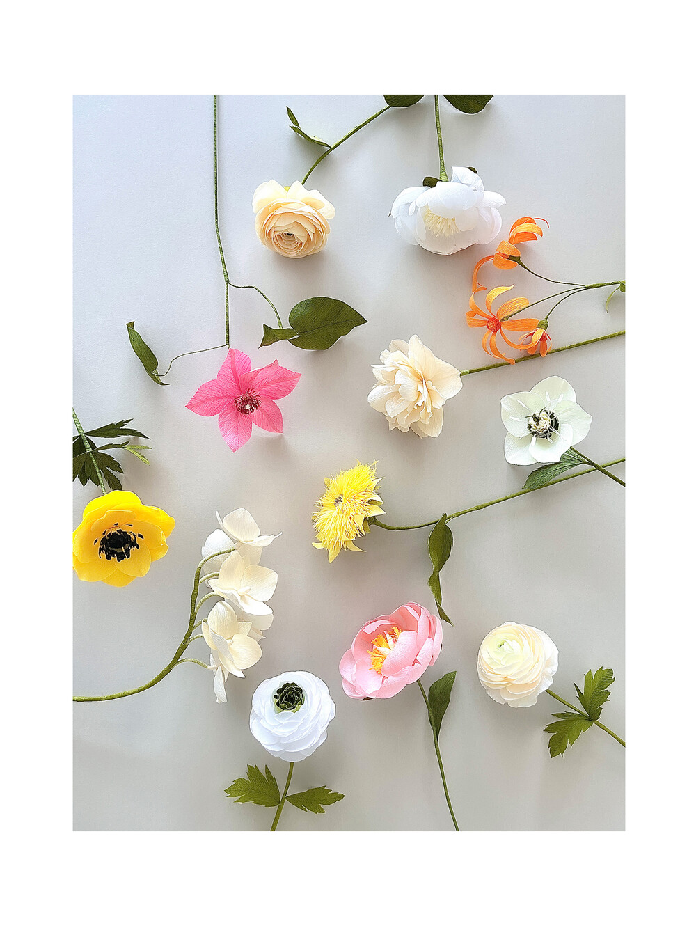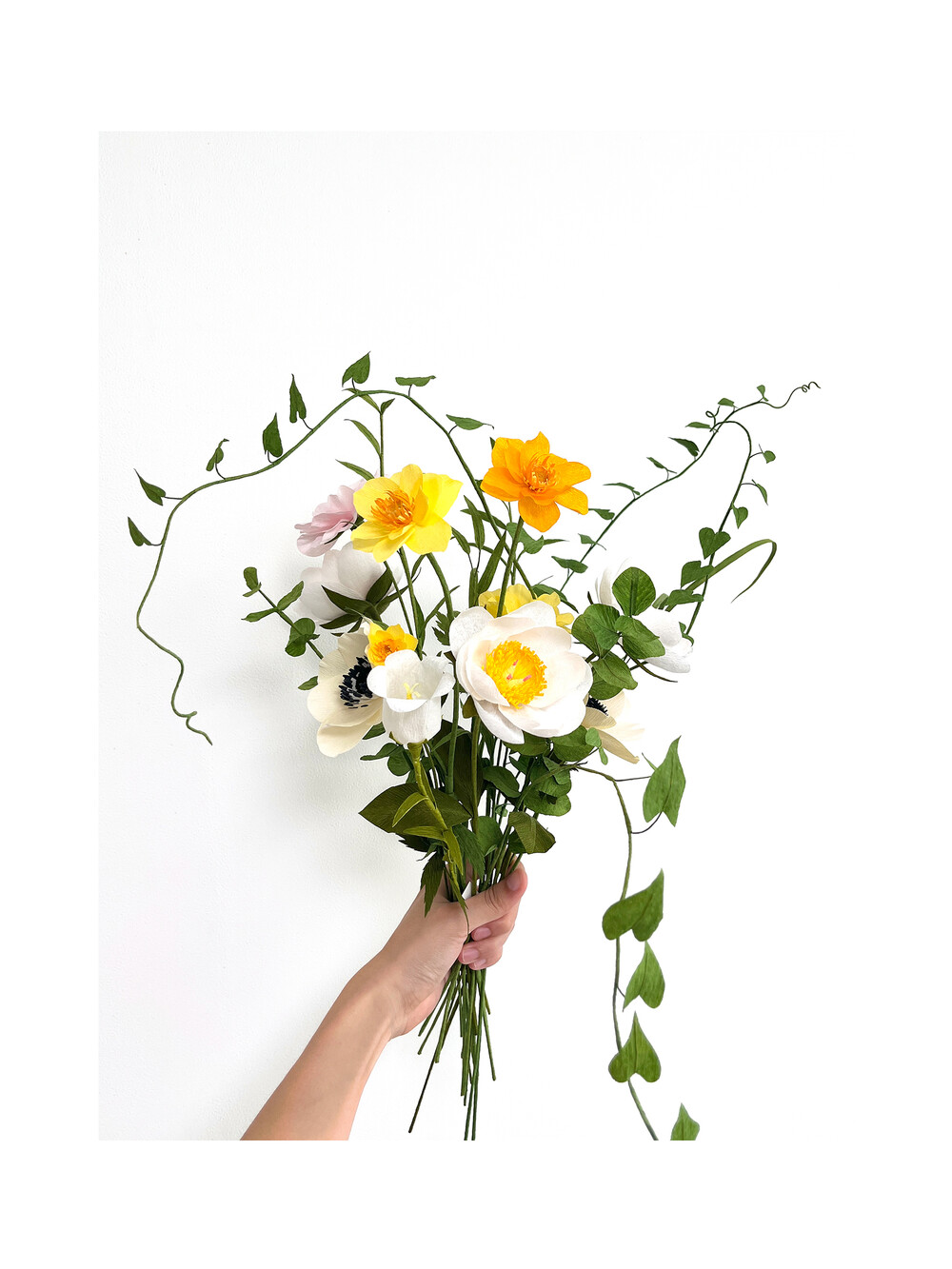모든 꽃은 고품질 크레이프 종이와 철사를 사용하여 수작업으로 제작됩니다.