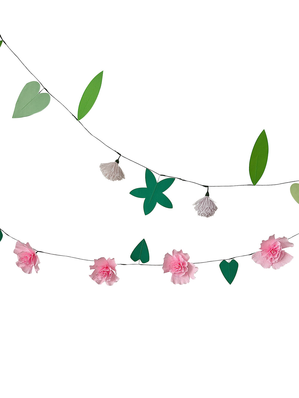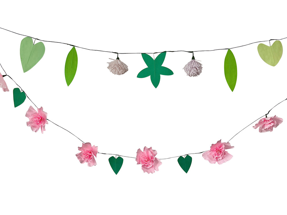 종이 꽃과 잎사귀로 장식된 가랜드로 특별한 날에 아름다움을 더할 수 있습니다.
