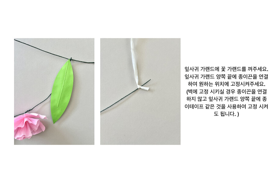 길이: 종이 꽃 약 165cm, 잎사귀 약 210cm ( 여분 종이끈도 함께 드립니다.)