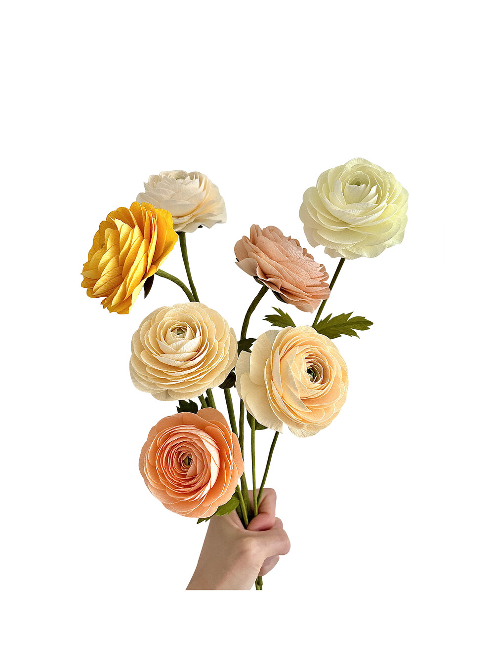 모든 꽃은 고품질 크레이프 종이와 철사를 사용하여 수작업으로 제작됩니다.